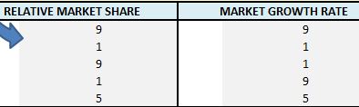 In this step, you need to enter the estimated relative market share and the estimated market growth rate, using the above scale of 1-9.